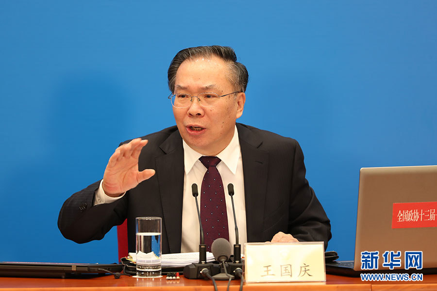 全國政協(xié)十三屆一次會議新聞發(fā)布會3月2日16:30在人民大會堂一層新聞發(fā)布廳召開,大會新聞發(fā)言人王國慶向中外媒體介紹本次大會有關(guān)情況并回答記者提問。圖為大會新聞發(fā)言人王國慶回答記者提問。?新華網(wǎng)/中國政府網(wǎng) 陳杰 攝