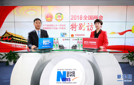 圖為全國人大代表、河南省輝縣市張村鄉(xiāng)裴寨村黨支部書記裴春亮做客新華網(wǎng)2018全國兩會(huì)特別訪談 新華網(wǎng) 范作言 攝