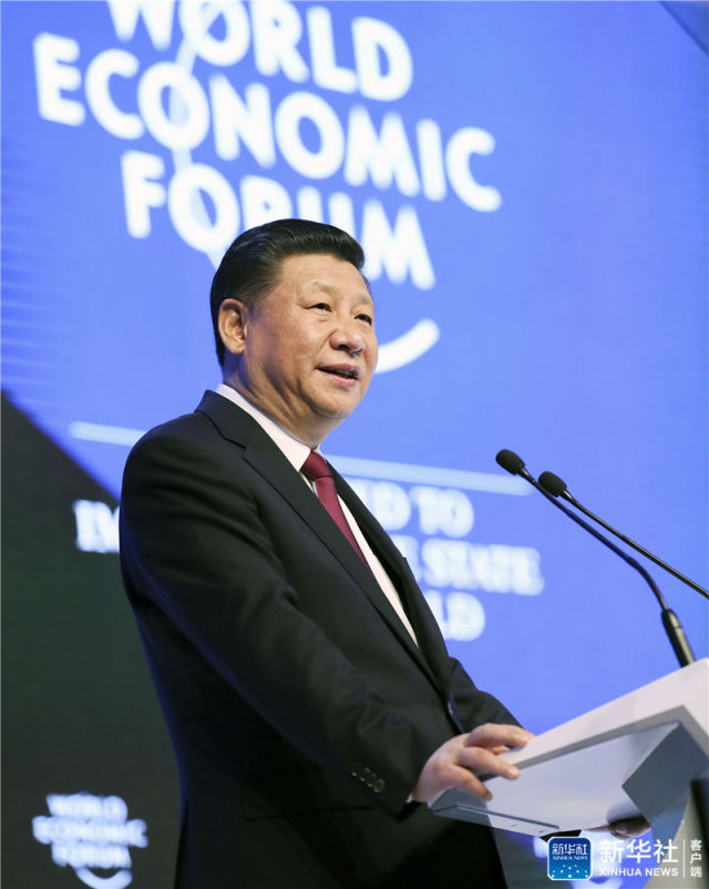 2017年1月17日,習(xí)近平在瑞士達(dá)沃斯國(guó)際會(huì)議中心出席世界經(jīng)濟(jì)論壇2017年年會(huì)開幕式,并發(fā)表題為《共擔(dān)時(shí)代責(zé)任 共促全球發(fā)展》的主旨演講。新華社記者 蘭紅光 攝