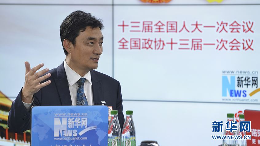 圖為18日,全國(guó)人大代表,云南省曲靖市委副書記、市長(zhǎng)董保同做客新華網(wǎng)2018全國(guó)兩會(huì)特別訪談。新華網(wǎng) 李相博攝