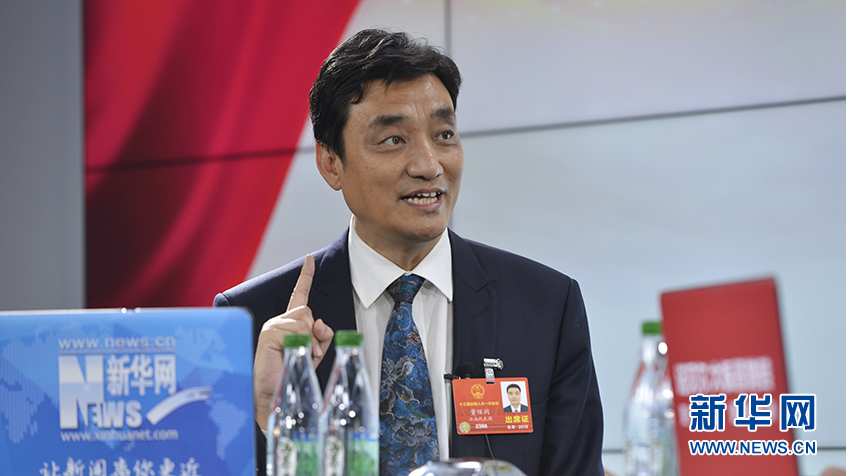 圖為18日,全國人大代表,云南省曲靖市委副書記、市長董保同做客新華網(wǎng)2018全國兩會(huì)特別訪談。新華網(wǎng) 李相博攝