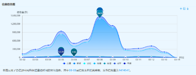 新華睿思大數(shù)據(jù)通過監(jiān)測新聞網(wǎng)站、論壇、微信、微博、APP、平媒6個信源,分析結(jié)果顯示,截至目前,全國兩會開幕以來,關(guān)于健康中國的話題共6788791個。