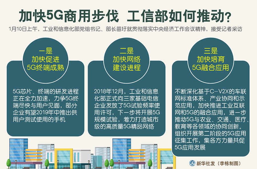 圖表:加快5G商用步伐 工信部如何推動(dòng)? 新華社發(fā) 李棟 制圖
