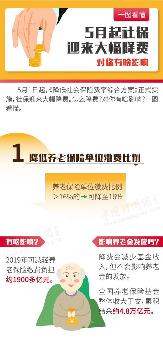 5月1日起,社保降費(fèi)新政正式落地。此次社保降費(fèi)能降多少?對(duì)企業(yè)和職工有啥影響?是否影響?zhàn)B老金發(fā)放?今年社保還有哪些大變化?一起來看。