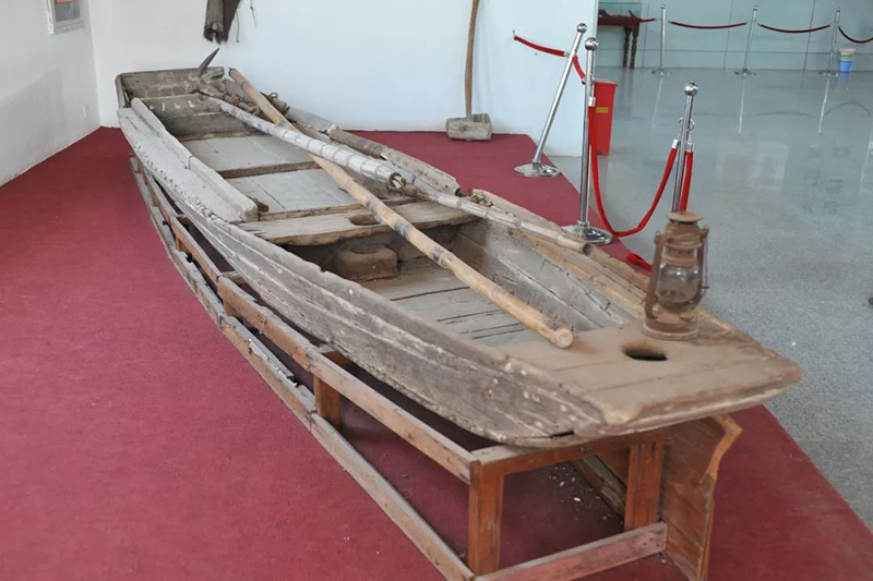 中央紅軍渡過(guò)于都河時(shí)所用的馬燈、門(mén)板、渡船等物。新華社記者 高皓亮 攝