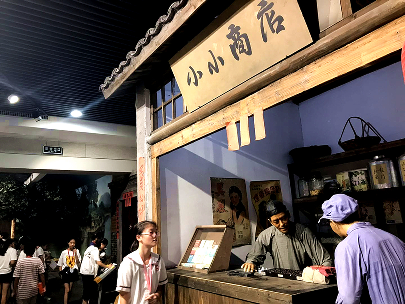 6月18日,一名學生在長汀縣博物館內(nèi)參觀“小小商店”展區(qū)。