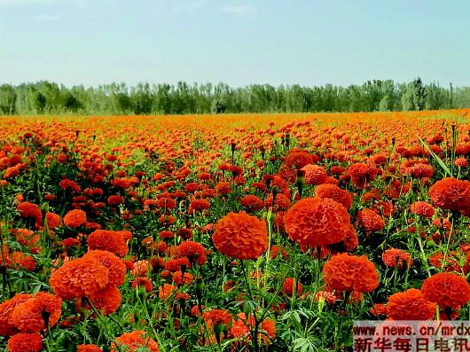 莎車集中連片種植的萬壽菊宛如“花的海洋”。