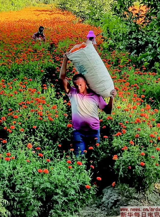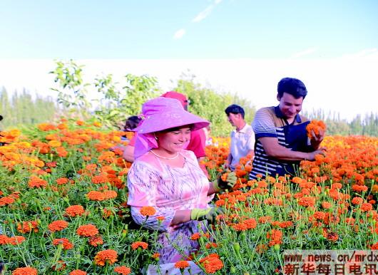 “種萬壽菊增收快,訂單農業(yè)很不錯?!卑透癜⑼咛徉l(xiāng)巴格吉格代村貧困戶阿布力米提·賽麥提說,去年他只種了2.5畝萬壽菊就掙了5000元。
