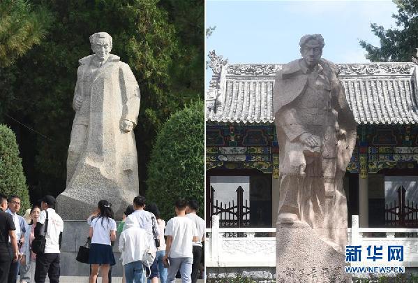 拼版照片左圖為劉志丹烈士陵園內(nèi)的劉志丹雕像(8月8日攝);右圖為子長(zhǎng)烈士紀(jì)念館內(nèi)的謝子長(zhǎng)雕像(8月9日攝)。新華社記者 羅曉光 攝