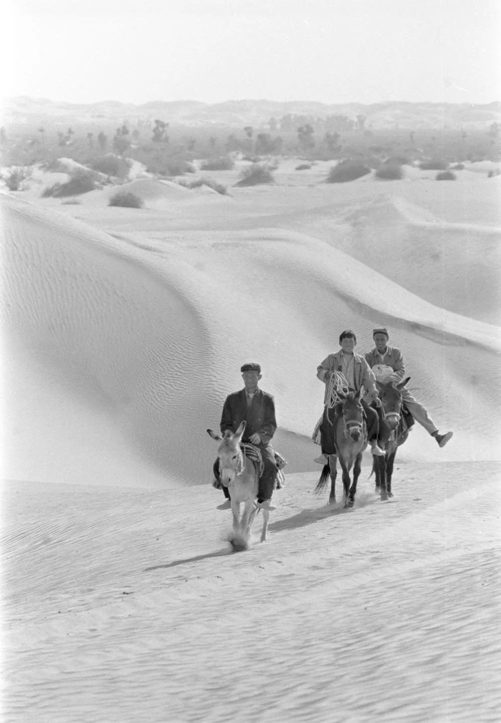 1997年4月3日,新疆民豐縣牙通古斯村村民騎毛驢西行3個小時,再通過公路乘長途客車前往其他地區(qū)。(新華社記者沈橋 攝)