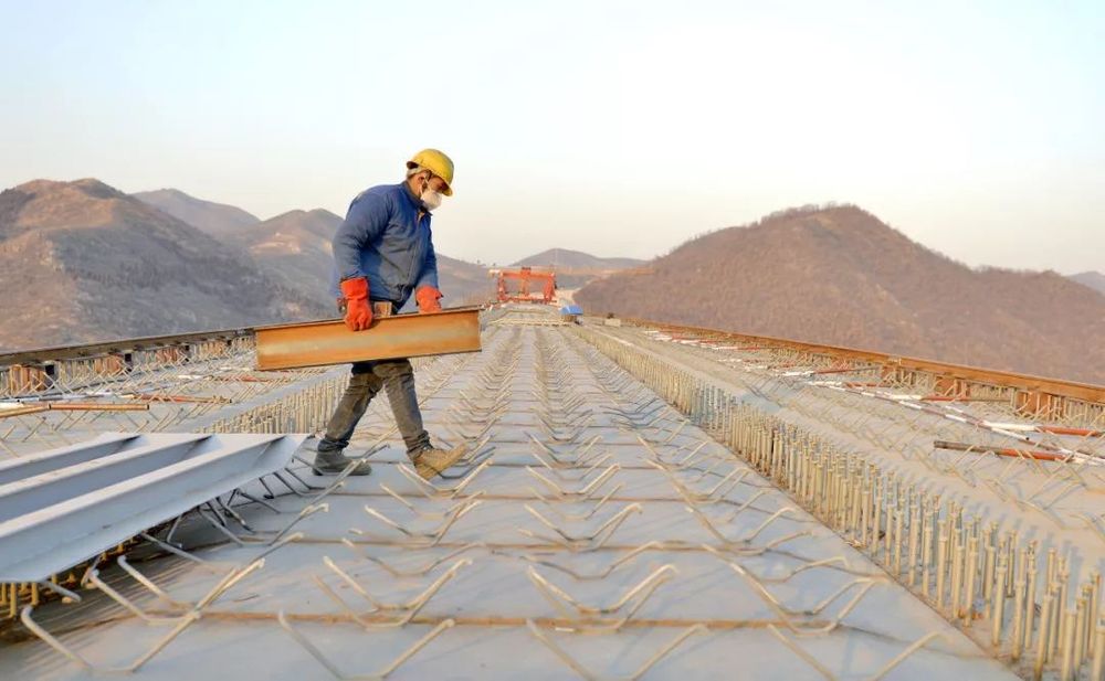 2018年1月12日,河北交投集團建設工人在太行山高速公路河北沙河三號橋施工。(新華社記者朱旭東 攝)
