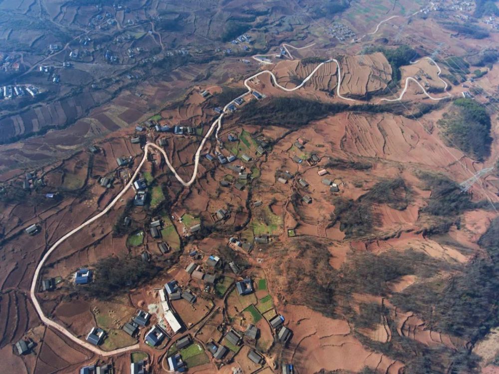 2017年2月12日,涼山彝族自治州美姑縣九口鄉(xiāng)四峨吉村6.3公里道路硬化項目從空中看來格外耀眼。(新華社記者劉坤 攝)