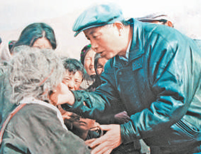 在西藏工作,孔繁森深深愛上了這片壯麗、神奇的高原,還有這里的人民。1988年,山東再次選派進藏干部,孔繁森第二次赴藏工作。進藏后,孔繁森擔(dān)任拉薩市副市長,分管文教、衛(wèi)生和民政工作。到任僅4個月,他就跑遍了全市8個縣區(qū)所有的公辦學(xué)校和一半以上的村辦小學(xué),為發(fā)展少數(shù)民族的教育事業(yè)奔波操勞;為結(jié)束尼木縣續(xù)邁鄉(xiāng)等3個鄉(xiāng)群眾易患大骨節(jié)病的歷史,他多次爬到海拔近5000米的山頂水源處采集水樣,幫群眾解決飲水問題;在了解農(nóng)牧區(qū)缺醫(yī)少藥的情況后,他每次下鄉(xiāng)時都特地帶一個醫(yī)療箱,工作之余就給農(nóng)牧民群眾認真地聽診、把脈、打針……