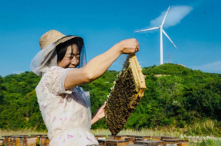 6月10日,山西晉城。一名蜂農(nóng)收獲蜂蜜。作者:知易