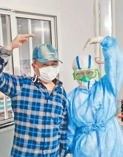 近日,雷神山醫(yī)院內(nèi)醫(yī)護人員與患者在一起。高 翔攝(影像中國)