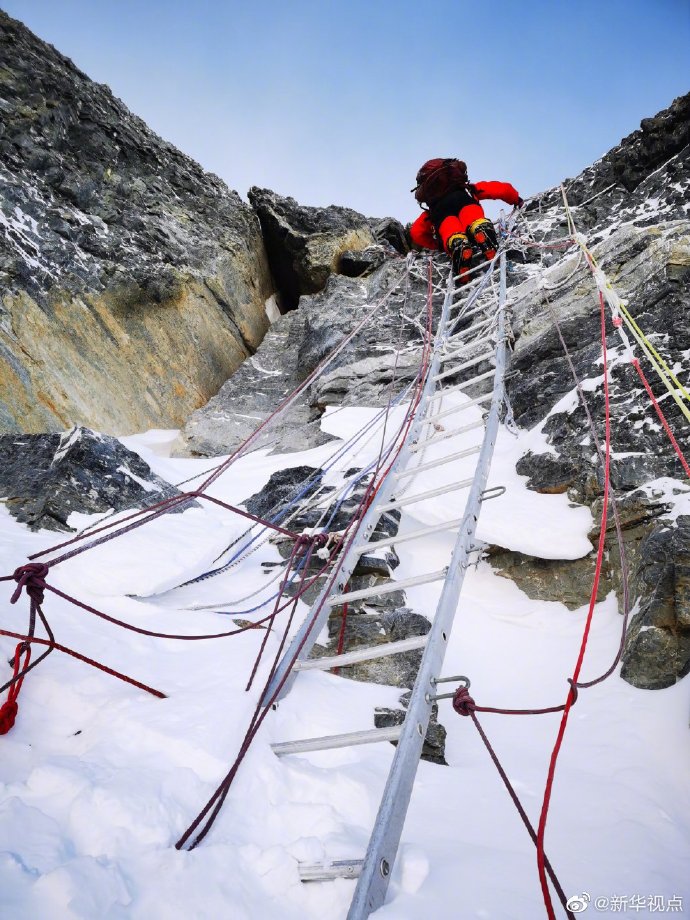 2020珠峰高程測量登山隊隊員已跨過第二臺階,準(zhǔn)備攀登第三臺階,進行沖頂