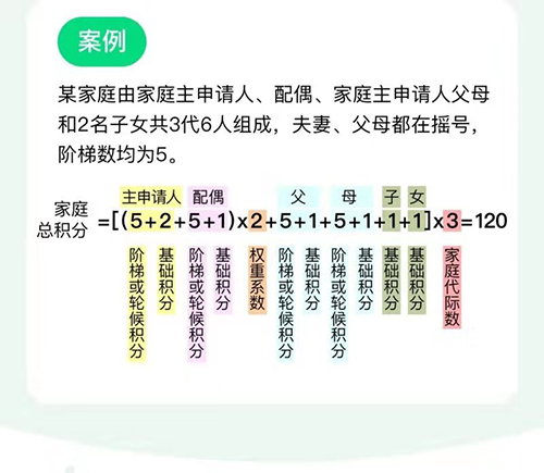 無論是幾代人家庭,家庭與個(gè)人都是在一個(gè)池子里搖號(hào)。家庭總積分和個(gè)人階梯數(shù)即為該家庭或個(gè)人的申請(qǐng)編碼出現(xiàn)在搖號(hào)池中的次數(shù),申請(qǐng)編碼出現(xiàn)的次數(shù)越多,中簽率越高。