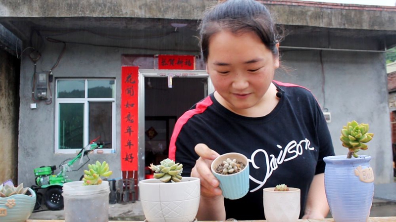 在尋烏縣丹溪鄉(xiāng)岑峰村,張荷花家讓記者眼前一亮——小院就在車(chē)來(lái)車(chē)往的縣道旁,本該積灰的地方卻沒(méi)啥塵土。房子雖是農(nóng)村少見(jiàn)的平房,但屋內(nèi)收拾得井井有條。低矮的院墻上,擺放著長(zhǎng)勢(shì)喜人的多肉、蟹爪蓮、長(zhǎng)壽花、玫瑰等植物,透露出主人的生活情趣。