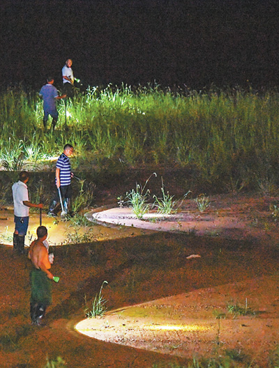 11日,湖南岳陽市君山區(qū)的洞庭湖大堤上,抗洪人員在巡堤查險(xiǎn)。新華社記者 陳澤國(guó)攝