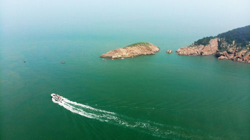 7月16日,“擁軍船”在蘇山島海域航行(無人機照片)。新華社記者 王凱 攝