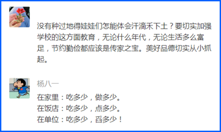 消費不等于浪費。有網(wǎng)友跟帖說,未富先奢,就是忘本。在吃飯問題上,勤儉節(jié)約的優(yōu)秀傳統(tǒng)不能忘!糧食安全,要在生產(chǎn)端“開源”,也要在消費端“節(jié)流”。