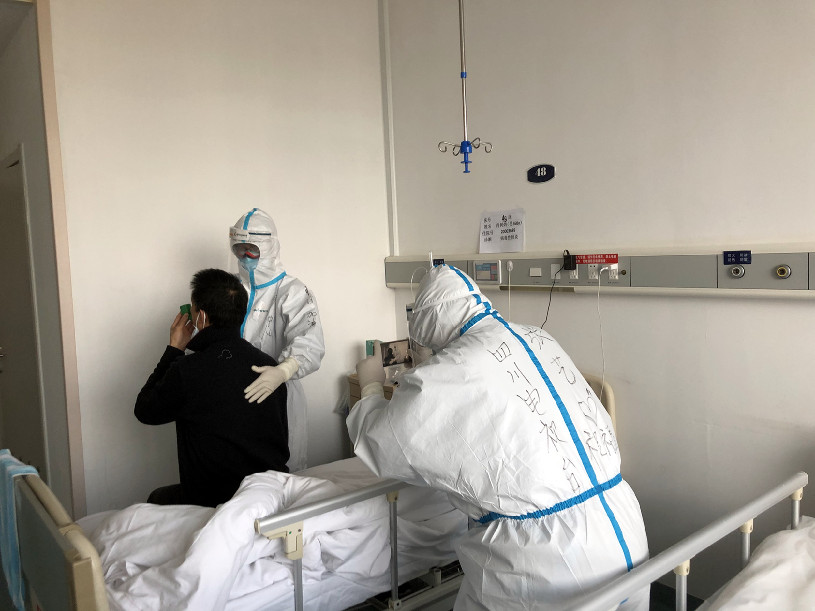四川廣播電視臺張藝2020年3月18日在武漢大學(xué)人民醫(yī)院隔離病房采訪
