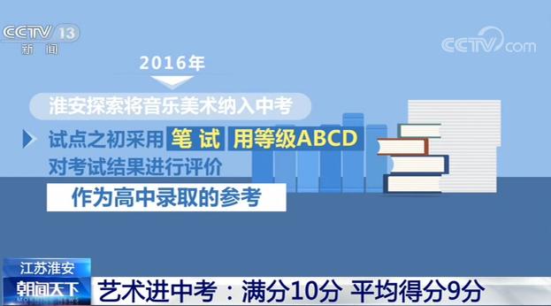 2016年,淮安探索將音樂美術納入中考,試點之初采用筆試、用等級ABCD對考試結(jié)果進行評價,作為高中錄取的參考。2018年,改革進一步深化,音樂、美術各以滿分5分分值計入中考總分,共十分,考核內(nèi)容主要是音樂、美術基本知識和基本素養(yǎng),考試方式由筆試調(diào)整為人機對話考核,不再局限在基本知識,而是注重考察學生對音樂和美術作品等欣賞辨析能力。