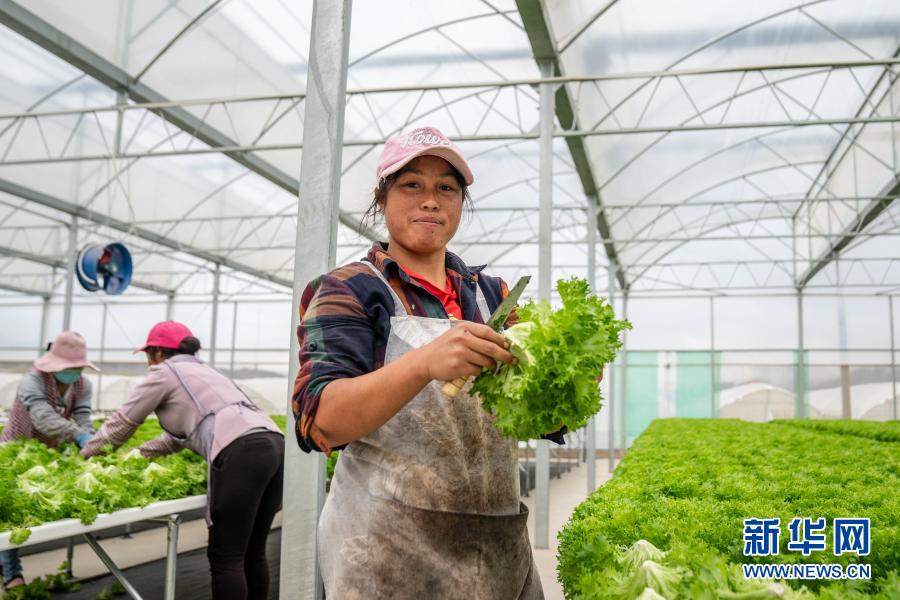9月29日,搬遷戶徐開蘭(右)在會(huì)澤縣華泥產(chǎn)業(yè)扶貧基地采收蔬菜。新華社記者 胡超 攝