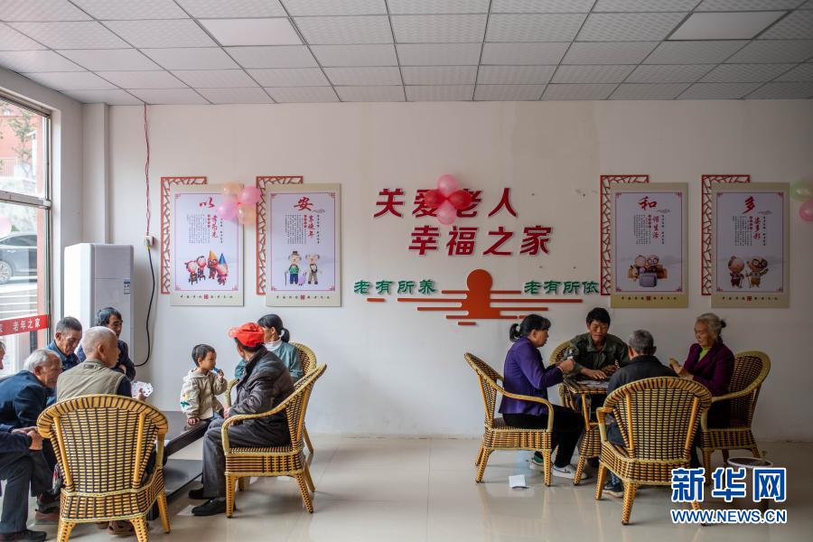 9月24日,在鎮(zhèn)雄縣大地易地扶貧搬遷安置點(diǎn),老人們?cè)诶夏曛倚蓍e娛樂。新華社記者 胡超 攝