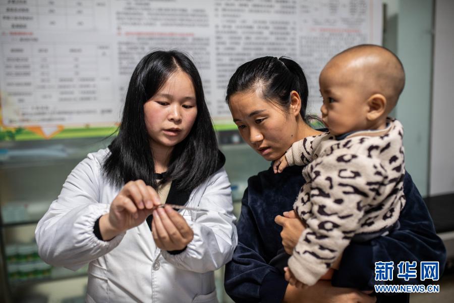9月23日,搬遷群眾帶孩子在位于鎮(zhèn)雄縣魯家院子易地扶貧搬遷安置點(diǎn)的南苑社區(qū)衛(wèi)生服務(wù)站看病。新華社記者 胡超 攝