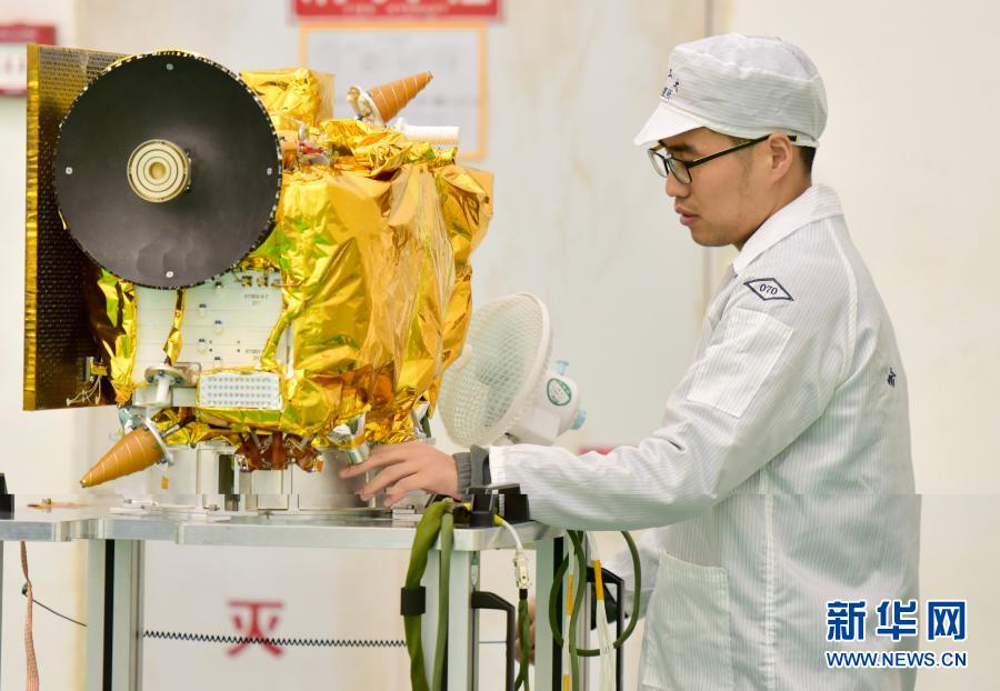 哈爾濱工業(yè)大學(xué)航天學(xué)院博士研究生吳凡調(diào)試“龍江二號”微衛(wèi)星(資料照片)。新華社發(fā)