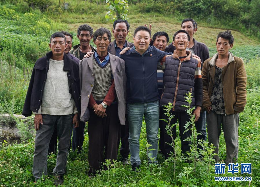 派駐到布拖縣覺撒鄉(xiāng)的幫扶干部楊永林(前排中)和博作村的彝族群眾合影(6月22日攝)。新華社記者 江宏景 攝