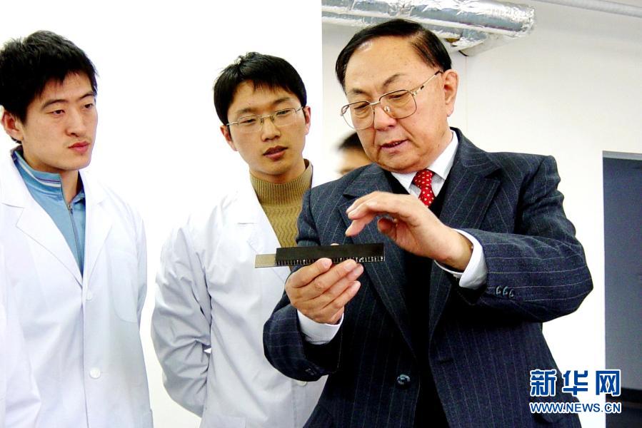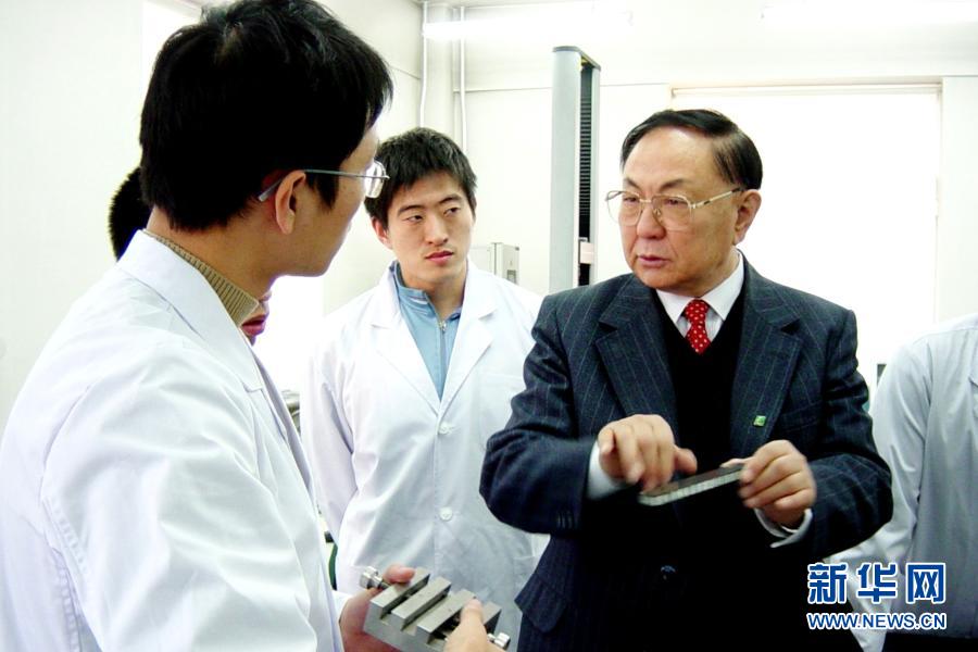 中國(guó)工程院院士、哈爾濱工業(yè)大學(xué)教授杜善義(右)為學(xué)生講解復(fù)合材料(資料照片)。新華社發(fā)