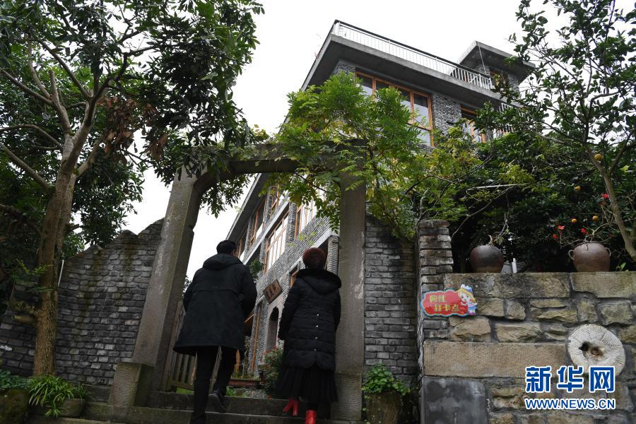 游客走進(jìn)重慶市萬(wàn)州區(qū)大周鎮(zhèn)五土村一民宿(12月10日攝)。新華社記者 王全超 攝