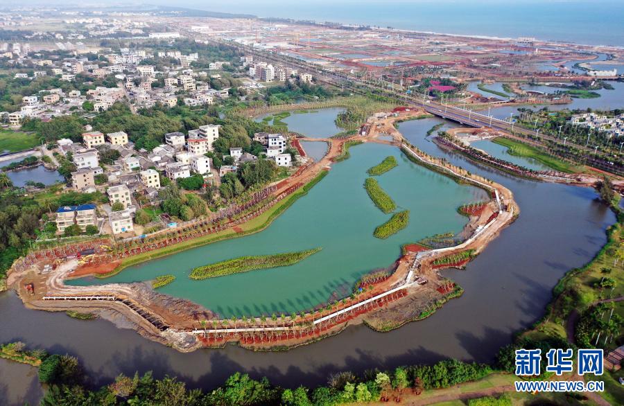 這是海口市江東新區(qū)芙蓉河綜合治理工程(11月6日攝,無人機(jī)照片)。新華社記者 郭程 攝