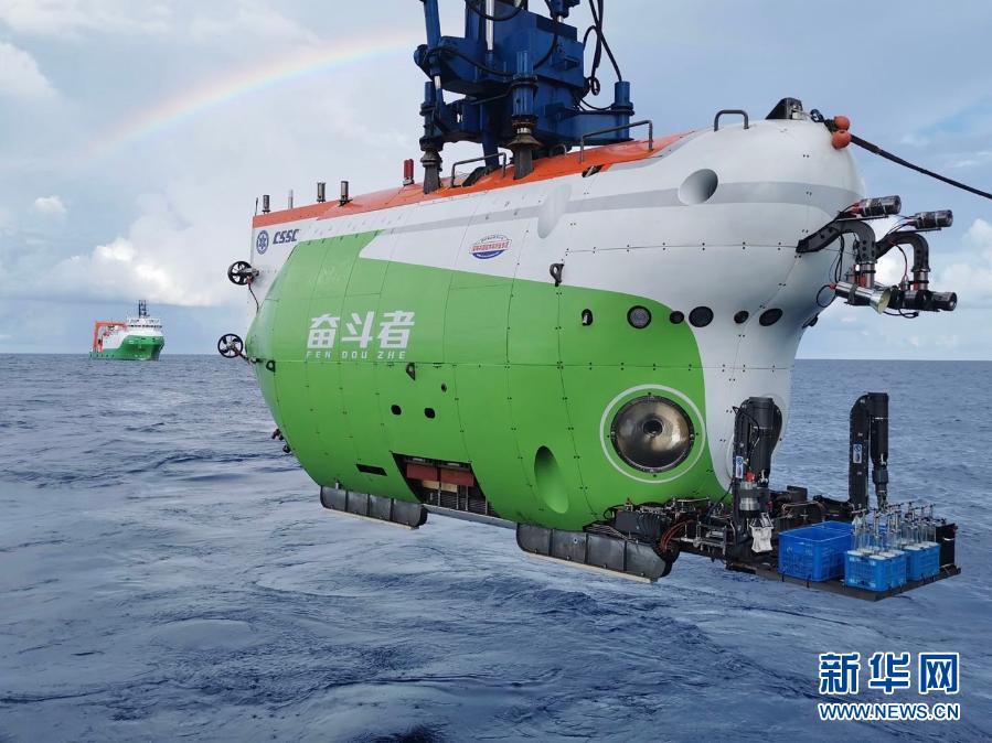 11月28日8時(shí)30分許,創(chuàng)造了10909米中國載人深潛新紀(jì)錄的“奮斗者”號(hào),完成第二階段海試,勝利返航。這是“奮斗者”號(hào)(資料照片)。新華社發(fā)(中國船舶集團(tuán)供圖)