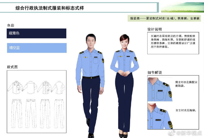 【這些綜合行政執(zhí)法部門將統(tǒng)一著裝,你喜歡嗎?】財(cái)政部、司法部日前印發(fā)《綜合行政執(zhí)法制式服裝和標(biāo)志管理辦法》,明確加強(qiáng)生態(tài)環(huán)境保護(hù)、交通運(yùn)輸、農(nóng)業(yè)、文化市場(chǎng)、應(yīng)急管理、市場(chǎng)監(jiān)管等綜合行政執(zhí)法制式服裝和標(biāo)志管理。這6支綜合行政執(zhí)法隊(duì)伍將統(tǒng)一著裝,不同執(zhí)法隊(duì)伍通過標(biāo)志中的名稱和圖案加以區(qū)分,徹底解決長(zhǎng)期以來不同執(zhí)法部門著裝五花八門的問題。來看看這些“新衣”預(yù)覽吧?。ㄓ浾呱赇?、白陽)