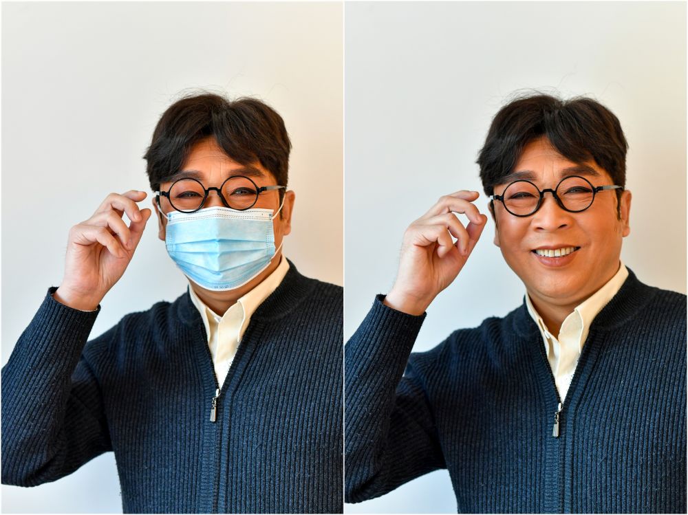 武凌云今年56歲,以扮演關(guān)公見長,近一米八的身高,配上濃眉高鼻梁和靈動的眼睛,英俊魁梧。從藝四十多年,戲劇生涯在他的臉上留下了痕跡,因長期佩戴頭套拉拽臉部皮膚,笑起來的時候,皺紋以太陽穴為分水嶺,向鬢角和臉頰兩個方向走去。