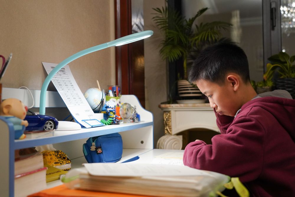 ??12月21日,蔡昊霖在家中學(xué)習(xí)。