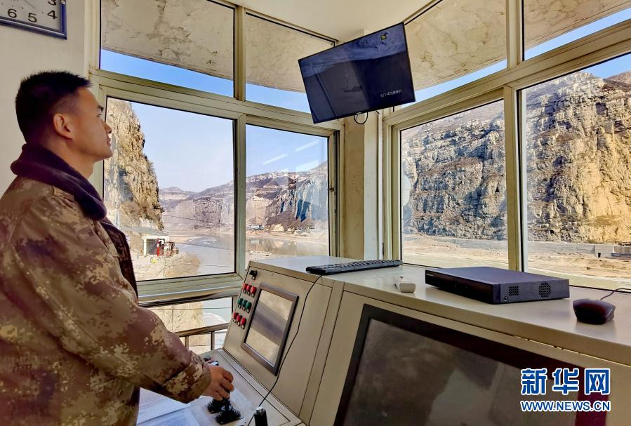 龍門水文站工作人員在纜道操作機(jī)房?jī)?nèi)操控纜道進(jìn)行流量測(cè)驗(yàn)(12月27日攝,手機(jī)照片)。新華社記者 劉詩平 攝