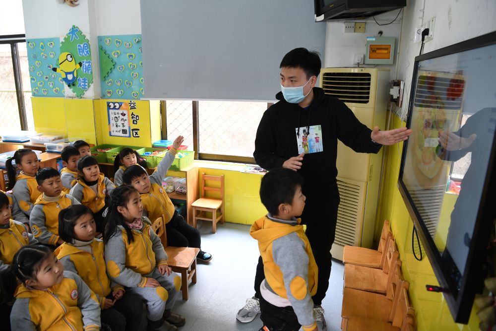 ??12月18日,孫浩在合肥鋼鐵集團第一幼兒園給孩子們上課。