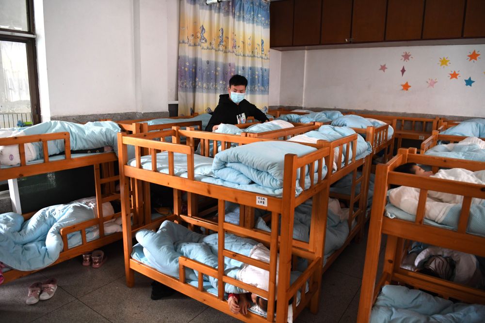 ??12月18日,孫浩在合肥鋼鐵集團第一幼兒園看護孩子們午睡。