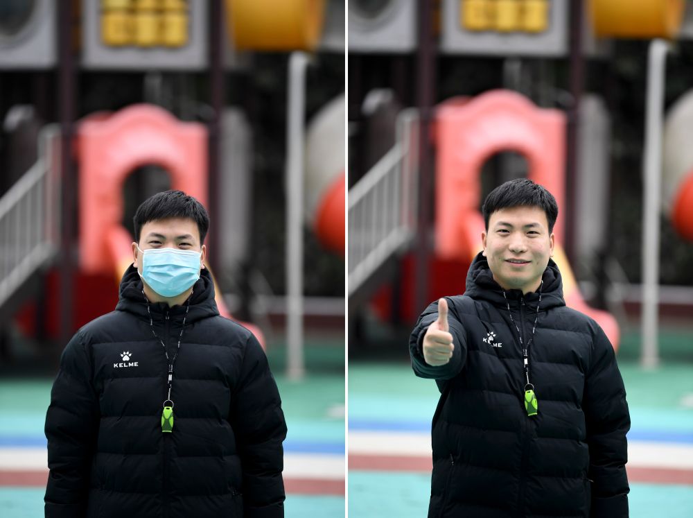 再次進入記者鏡頭的孫浩,口罩摘下了,短袖變成了羽絨服,不變的是他身邊簇擁著的孩子,以及他在這一年最溫暖的笑容。