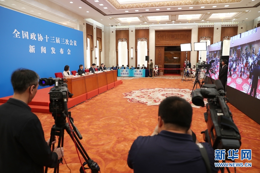 5月20日,全國政協(xié)十三屆三次會議新聞發(fā)布會在北京舉行,大會新聞發(fā)言人郭衛(wèi)民介紹本次大會有關(guān)情況并回答中外記者提問。圖為人民大會堂新聞發(fā)布廳現(xiàn)場。新華網(wǎng) 王翰林 攝