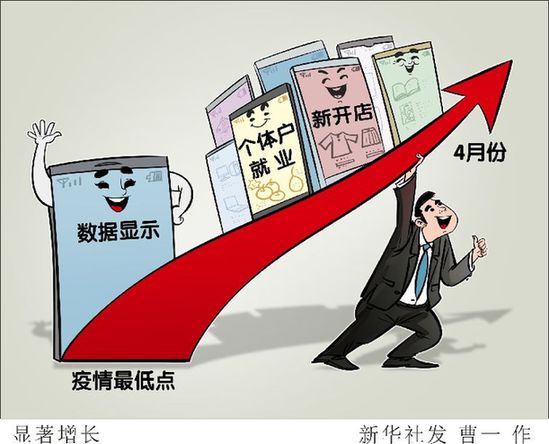數(shù)據(jù)顯示,4月份與疫情最低點2月1日當周相比,每周新增個體戶小店數(shù)量平均提高79%,每周新增小店的交易金額平均增長305%。在2月上旬,活躍的個體戶小店減少了40.4%,營業(yè)額降低了52.4%。(新華社發(fā) 曹一 作)