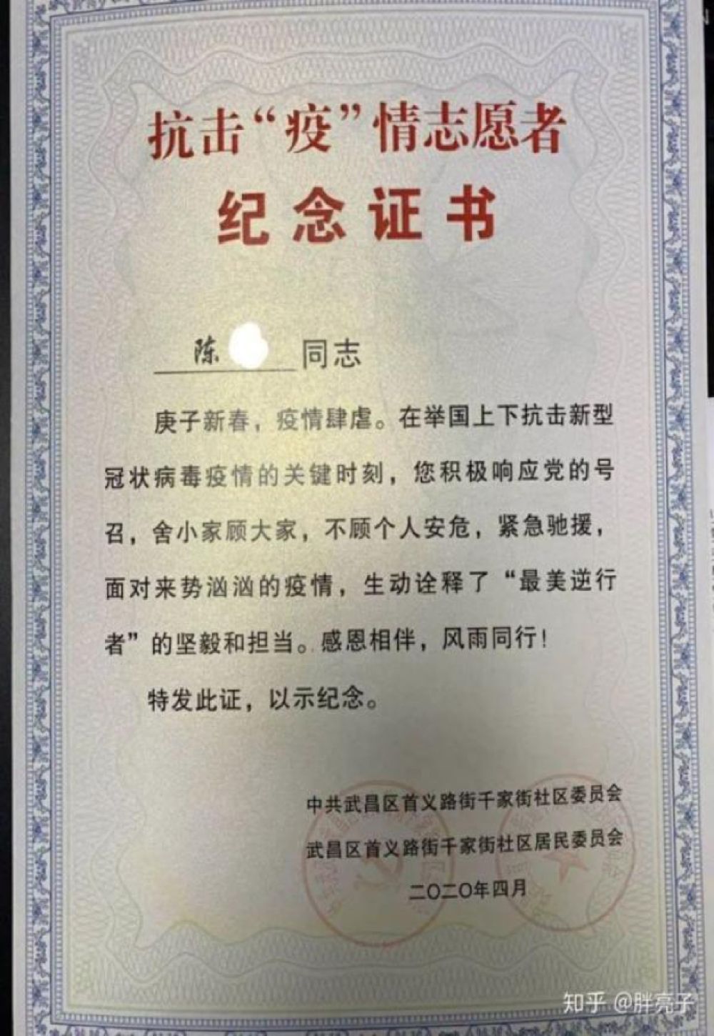 在武漢,網(wǎng)友“胖亮子”說,2月底,他的妻子接到下沉社區(qū)做志愿者的通知,可以自愿選擇,但她很快答應了?!捌綍r有點潔癖而且膽小的老婆在這個時候能夠挺身而出,讓我刮目相看。”