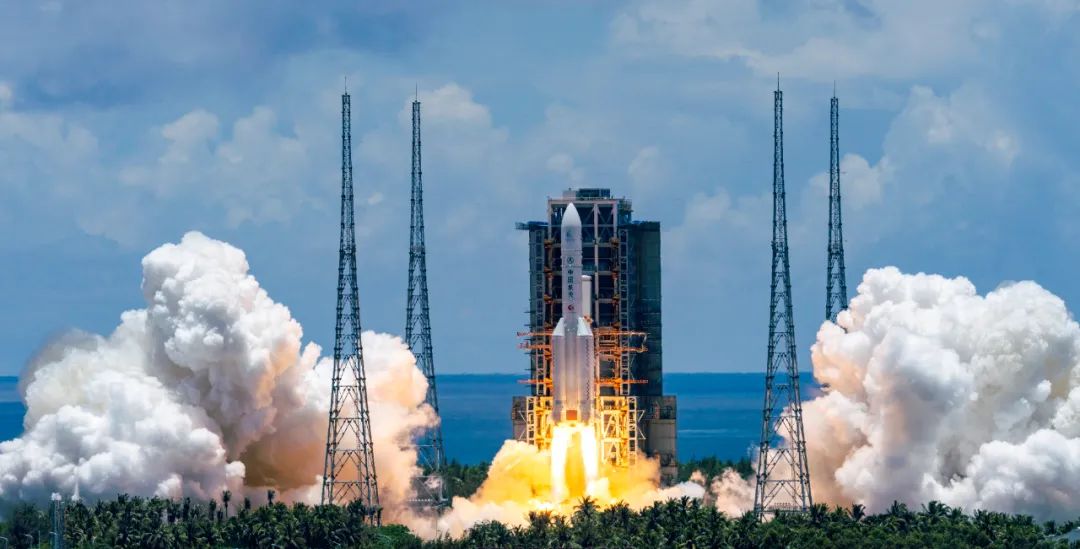 2020年7月23日,長征五號遙四運(yùn)載火箭在中國文昌航天發(fā)射場點(diǎn)火升空,實(shí)施我國首次火星探測任務(wù)(天問一號任務(wù))。新華社記者 才揚(yáng) 攝