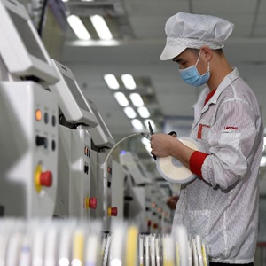 工作人員在聯寶(合肥)電子科技有限公司生產車間內忙碌。(新華社記者周牧攝)