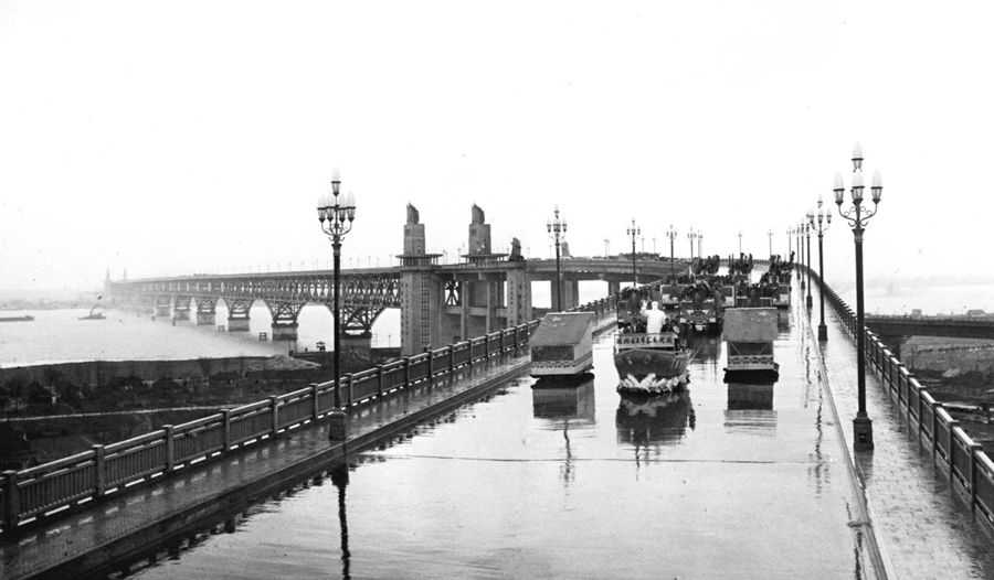 1968年12月29日,南京市5萬多軍民歡聚在江邊橋頭,隆重舉行大會,慶祝南京長江大橋全面建成。慶祝大會結束后,紅色的信號彈騰空而起,在一片鞭炮和鑼鼓聲中,100多輛滿載南京群眾代表的彩車徐徐通過公路橋。頓時,大江南北,橋上橋下,車內(nèi)車外,一片歡騰,歡呼聲震撼大地,響徹云霄。