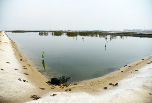 秋季,是位于黃河口的東營(yíng)市墾利區(qū)大閘蟹收獲時(shí)節(jié),圖為當(dāng)?shù)卮箝l蟹養(yǎng)殖區(qū)一角。新華社記者 王凱攝